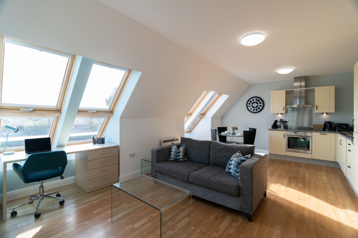 Enjoy stylish serviced apartments offering light, open plan living with lots of space. The kitchens to the Millhouse apartments Derby are fully equipped with all the essentials including washing facilities and built-in appliances. Living/dining areas benefit from 55” Smart TV, ultra-fast fibre Wi-Fi and a dedicated workspace.